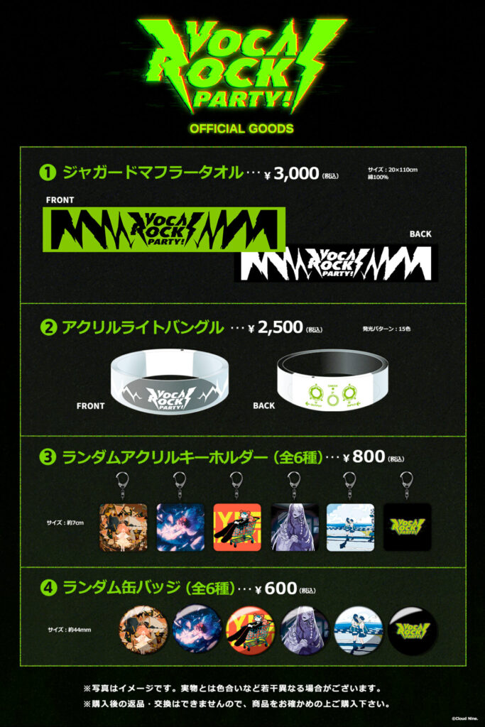 「VOCAROCK PARTY!」にお越しの皆様へ、公演に関してのご注意、ホワイエ展示、グッズ販売、CD販売についてご案内いたします。