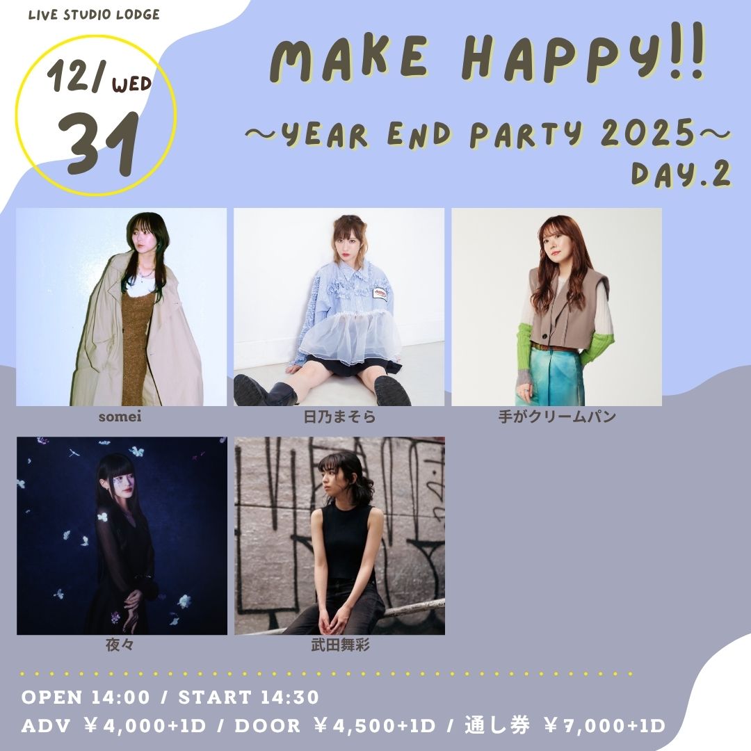 12月31日(水) LIVE STUDIO LODGEにて開催『Make Happy!!〜Year End Party 2025〜DAY.2』に出演決定!