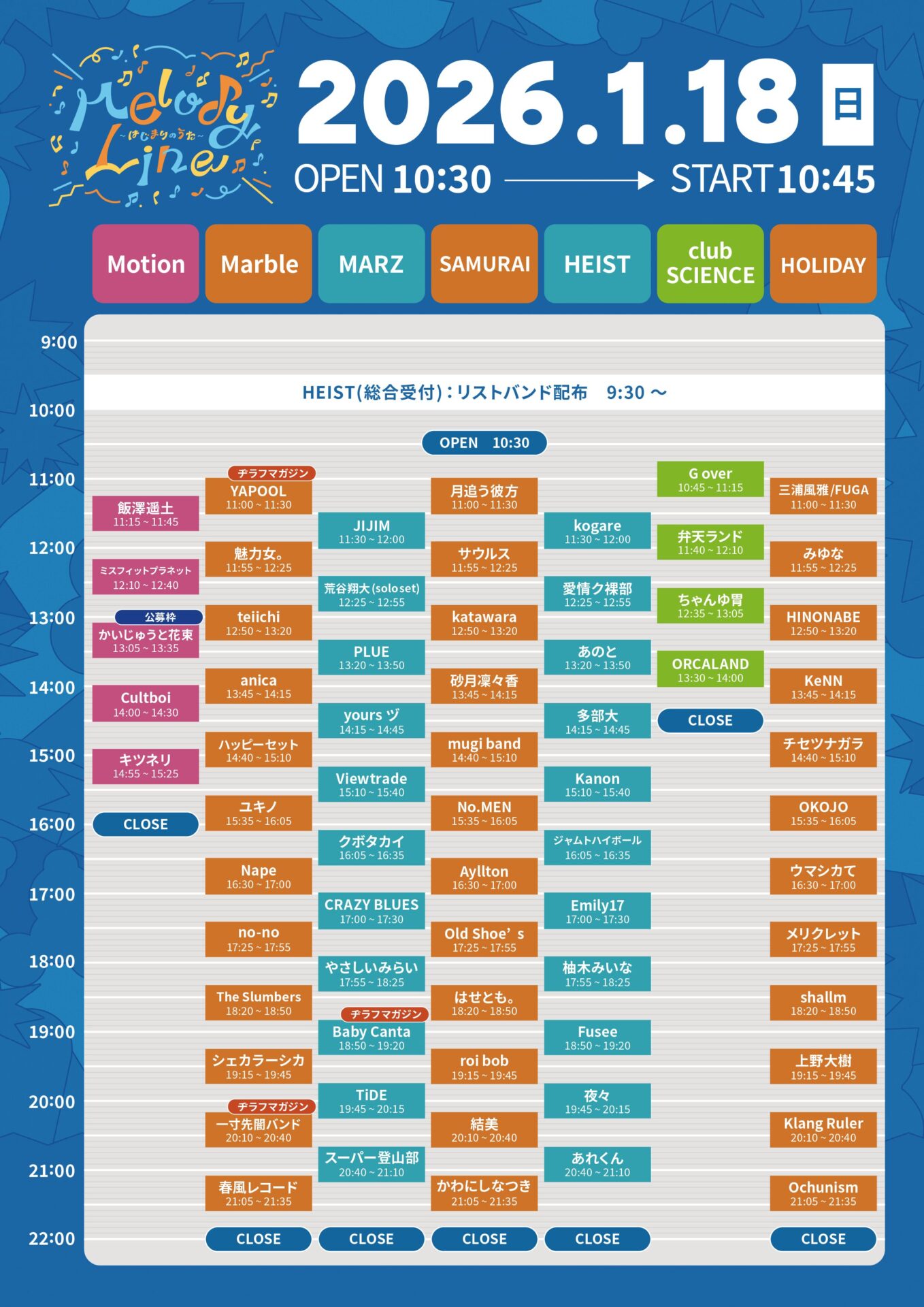 新宿ライブハウス7会場にて開催「Melody Line~はじまりのうた~」タイムテーブル公開!