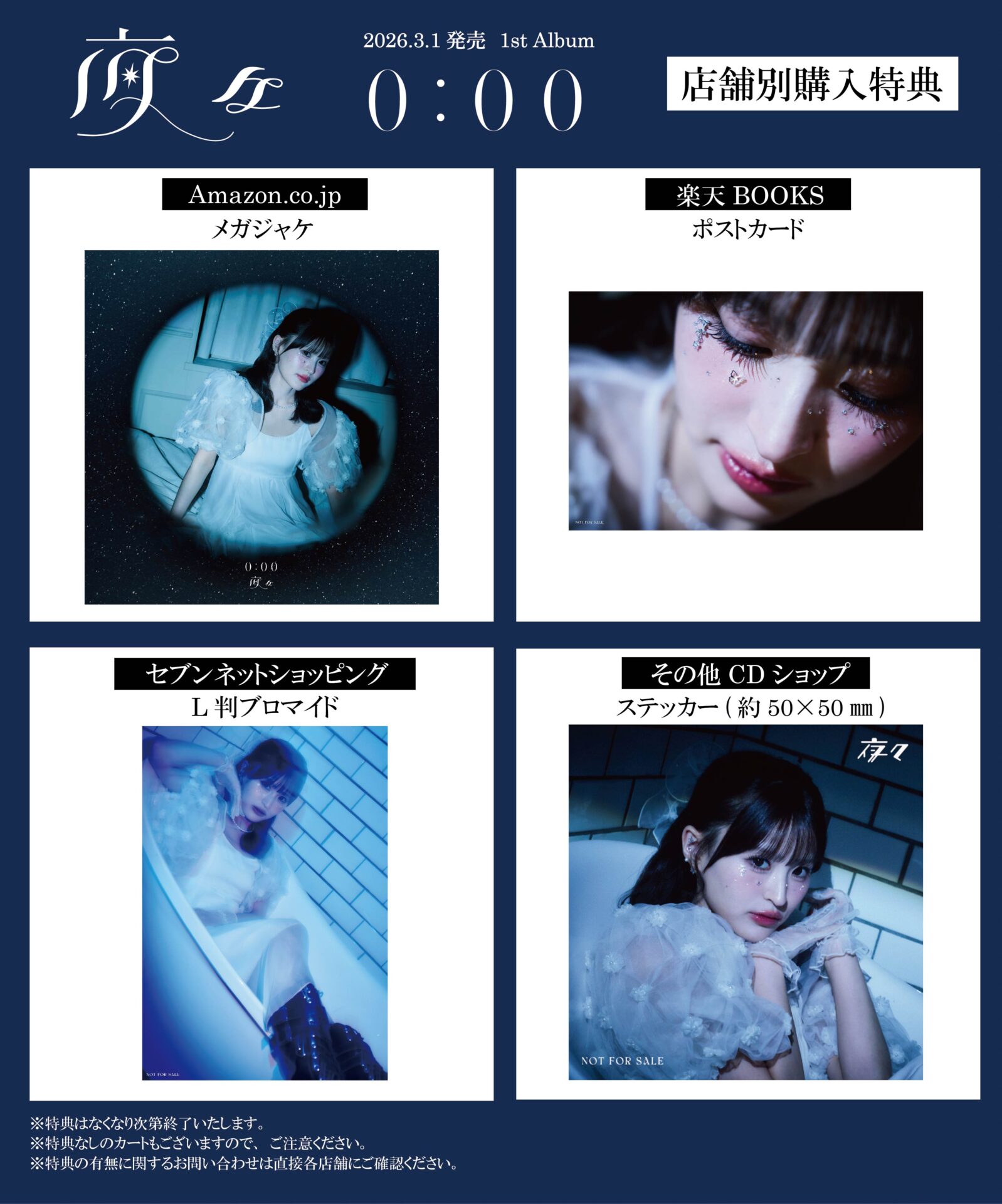 3月4日にリリースされる夜々 1st Album『0:00』のジャケット写真と収録内容が解禁となった。