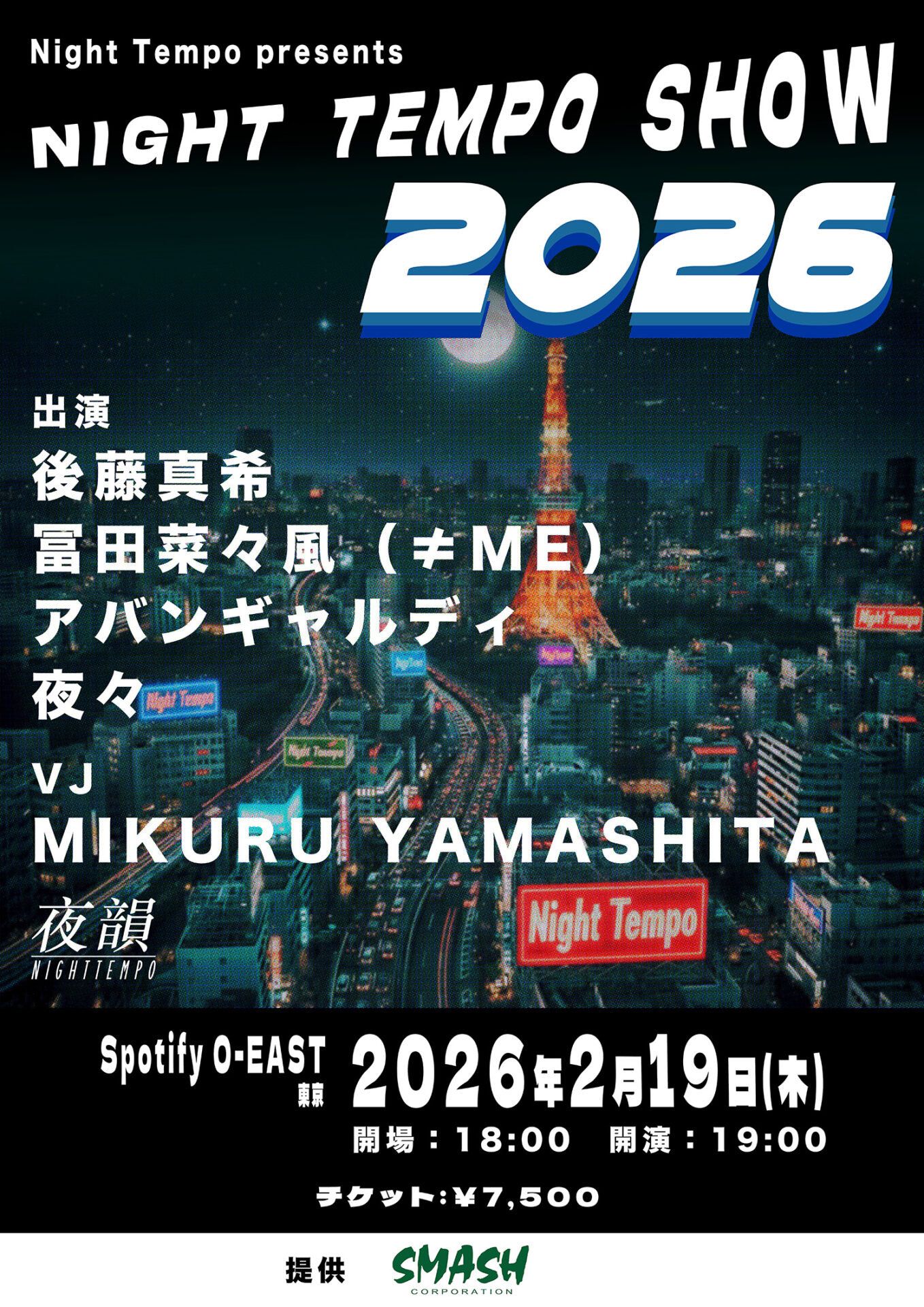 Night Tempoのバースデイ・ライブ「The Night Tempo Show 2026」に出演することも決定。