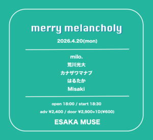 4月20日(月) ESAKA MUSEにて開催される『merry melancholy』にMisakiの出演が決定いたしました。