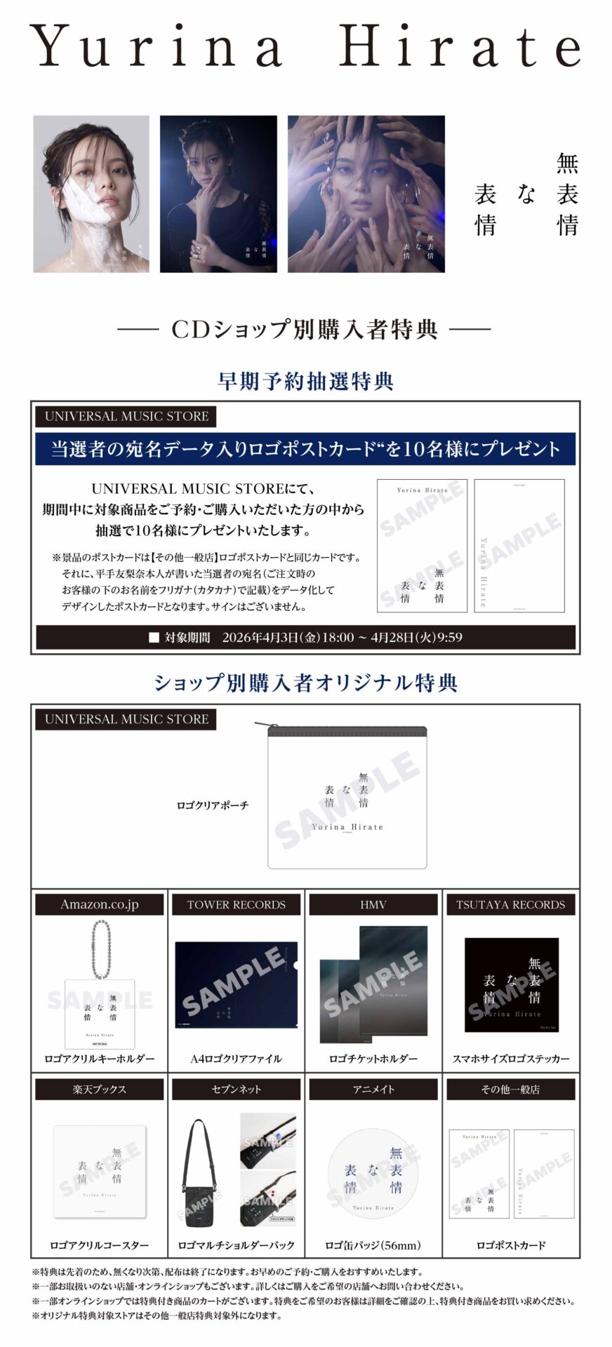 6月3日(水)発売 平手友梨奈 1stアルバム『無表情な表情』CDショップ別購入特典 絵柄公開!
